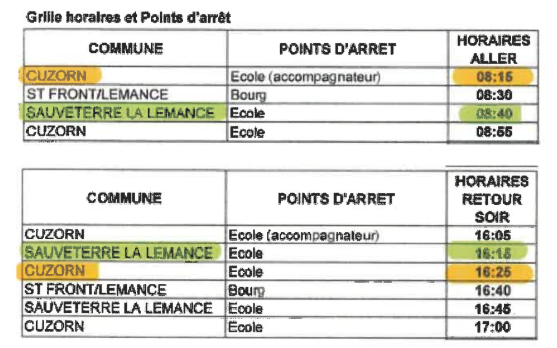 BUS SCOLAIRE ENTRE LES 2 SITES CUZORN -SAUVETERRE